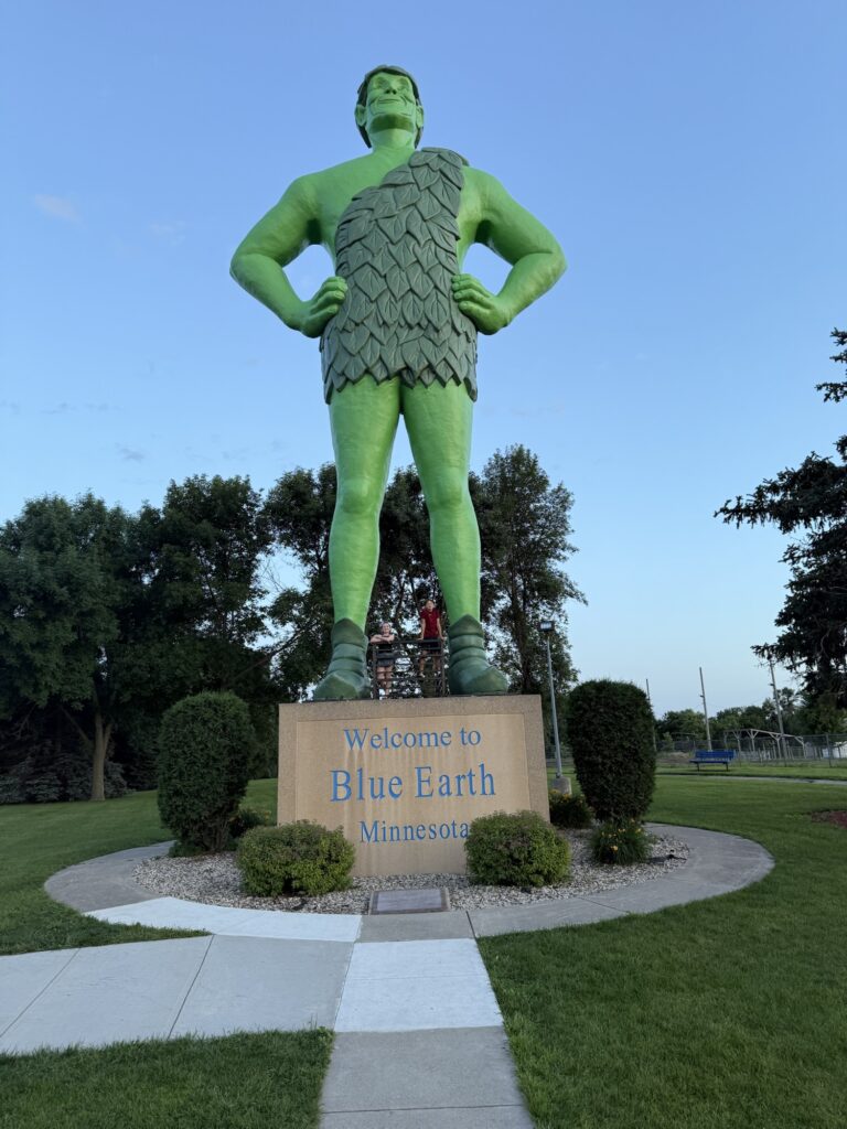 Driving through South Dakota Joel thinks it all looks like the desktop wallpaper of Windows. These rows of Eastern Red Cedar and Chinese Elm were planted during the dust bowl in the 1930’s as part of the Great Plains Shelterbelt project. They were planted as wind breaks, helping to reduce soil erosion. Dignity of Earth and SkyGoodbye South Dakota, Hello Minnesota!Culvers Butter Burgers for the win!!The Green Giant!